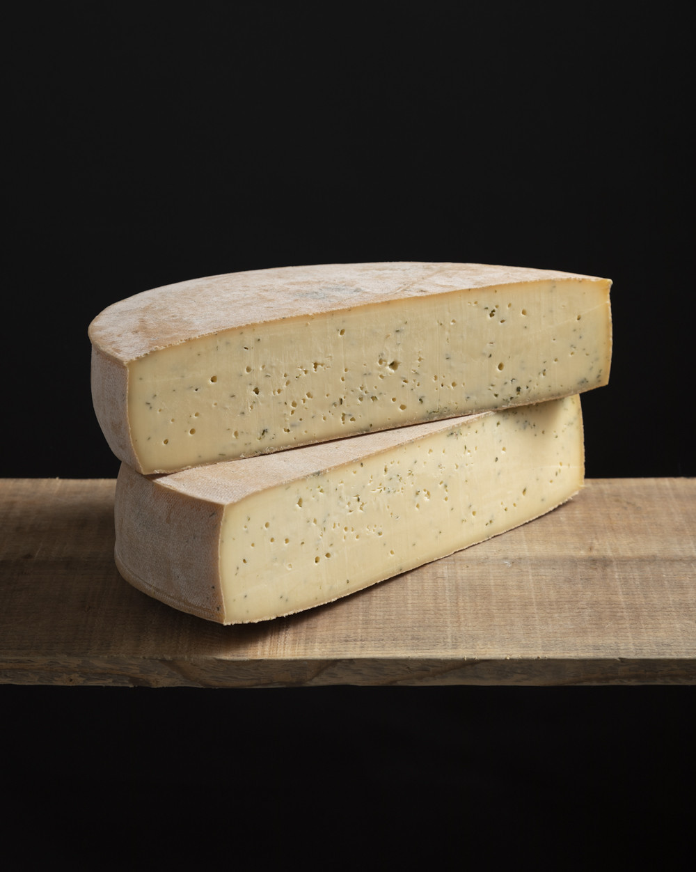 Affinée 7 à 8 semaines sur planche d'épicéa chez notre producteur partenaire, elle offre des arômes typés, une pâte souple et une croûte morgée qui confère des notes rustiques et fermières atypiques. Nous terminons l'affinage sur paillons de seigle pour donner une finale en bouche plus végétale.
